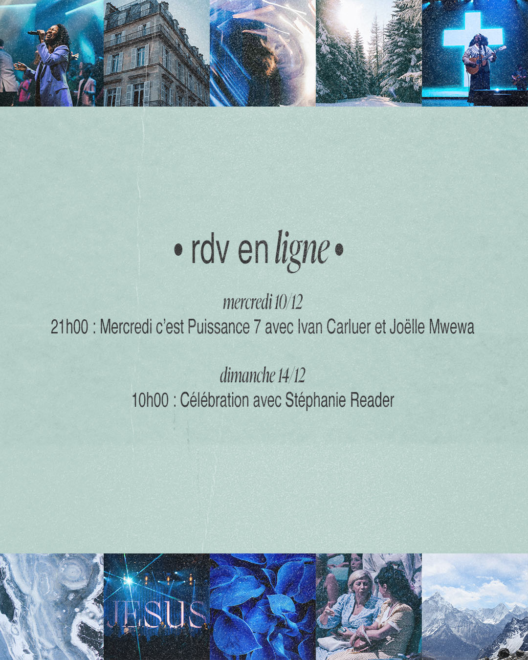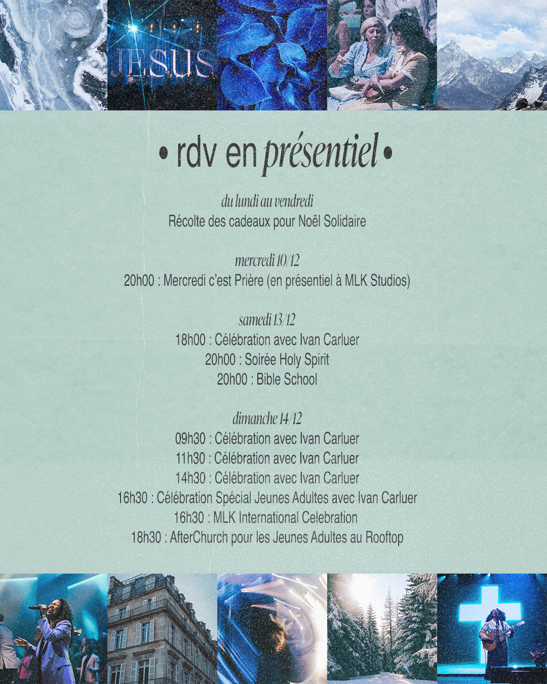 Célébrations, dimanche à 09h30, 11h30 et 14h30 avec Ivan Carluer